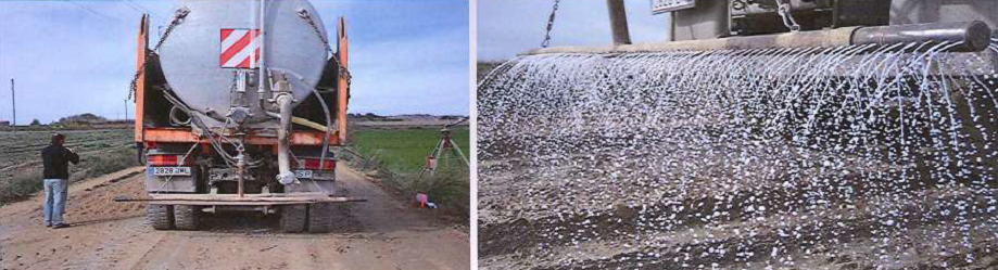Controllably dosed on the ground prepared quantities of diluted product through a tank with spray bar and flowmeter.